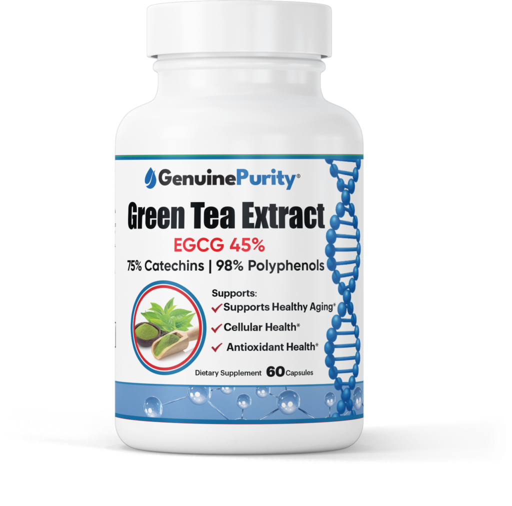 GenuinePurity Green Tea Extract delivers a concentrated profile of clinically validated antioxidants, including 98% polyphenols, 75% catechins, and 45% EGCG. These bioactive compounds work synergistically to protect cells from oxidative stress, support healthy inflammatory responses, promote cellular energy production, and contribute to overall hormonal wellness. Unlike traditional green tea consumption, which can vary widely in antioxidant content, this pharmaceutical-grade formula provides consistent, standardized doses of green tea’s most beneficial compounds with every capsule.