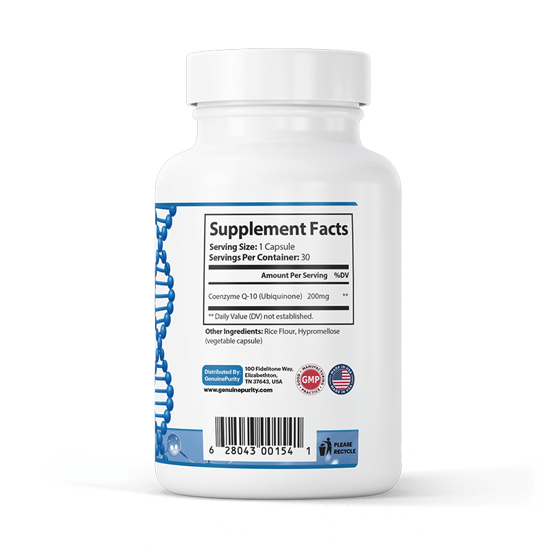 GenuinePurity® CoQ10 provides a clinically supported 200 mg serving of Ubiquinone, derived from natural sources and formulated for consistent quality and affordability.