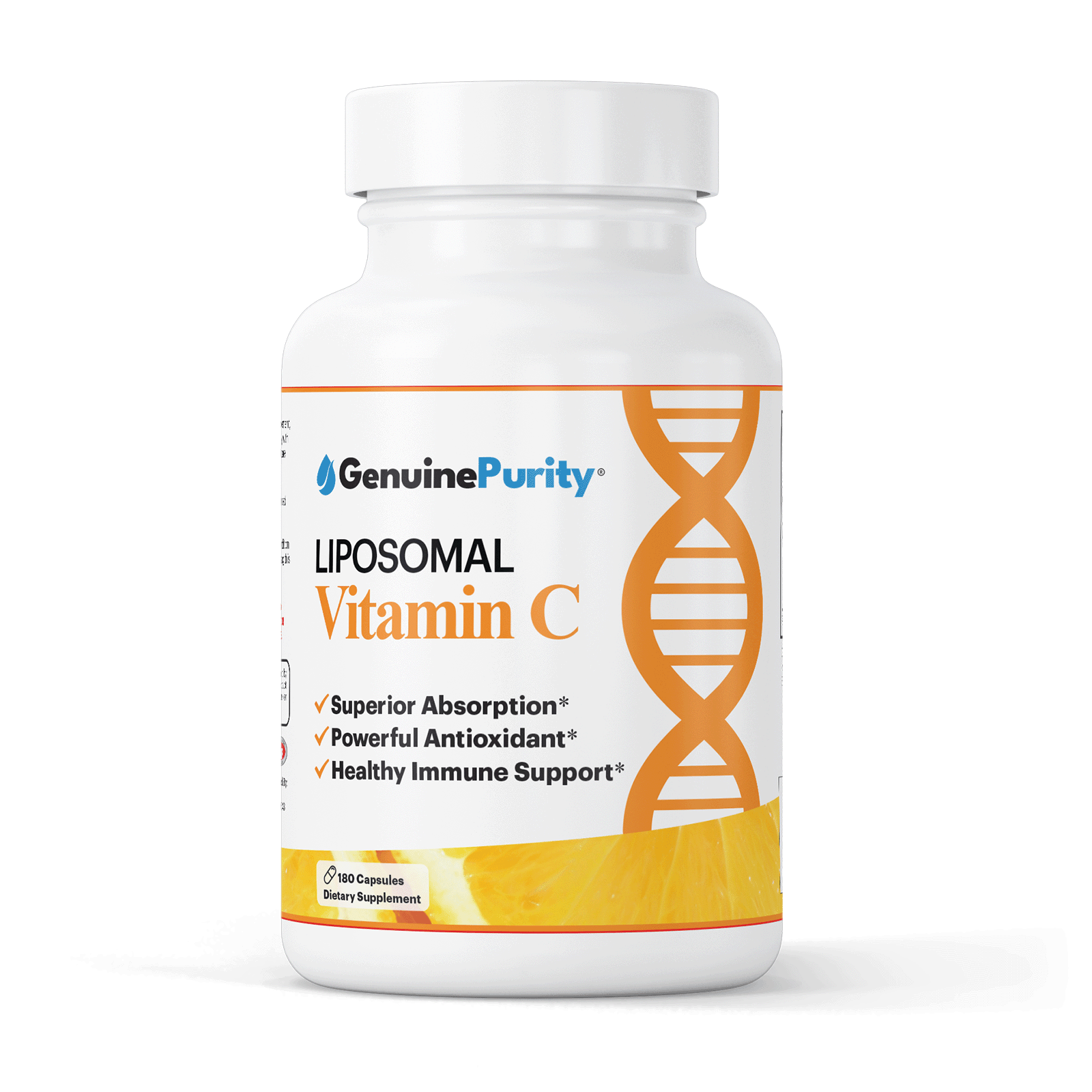 GenuinePurity® Liposomal Vitamin C uses stable Vitamin C compounds encapsulated in a plant-based liposomal system. This natural delivery method fuses with cell membranes, enhancing absorption and ensuring more Vitamin C reaches your cells.
