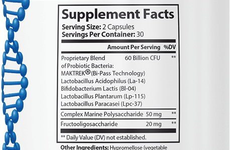 MAKTREK® Bi-Pass Technology helps protect probiotics from harsh stomach acid, improving survival and targeted release in the small intestine—where absorption matters most.